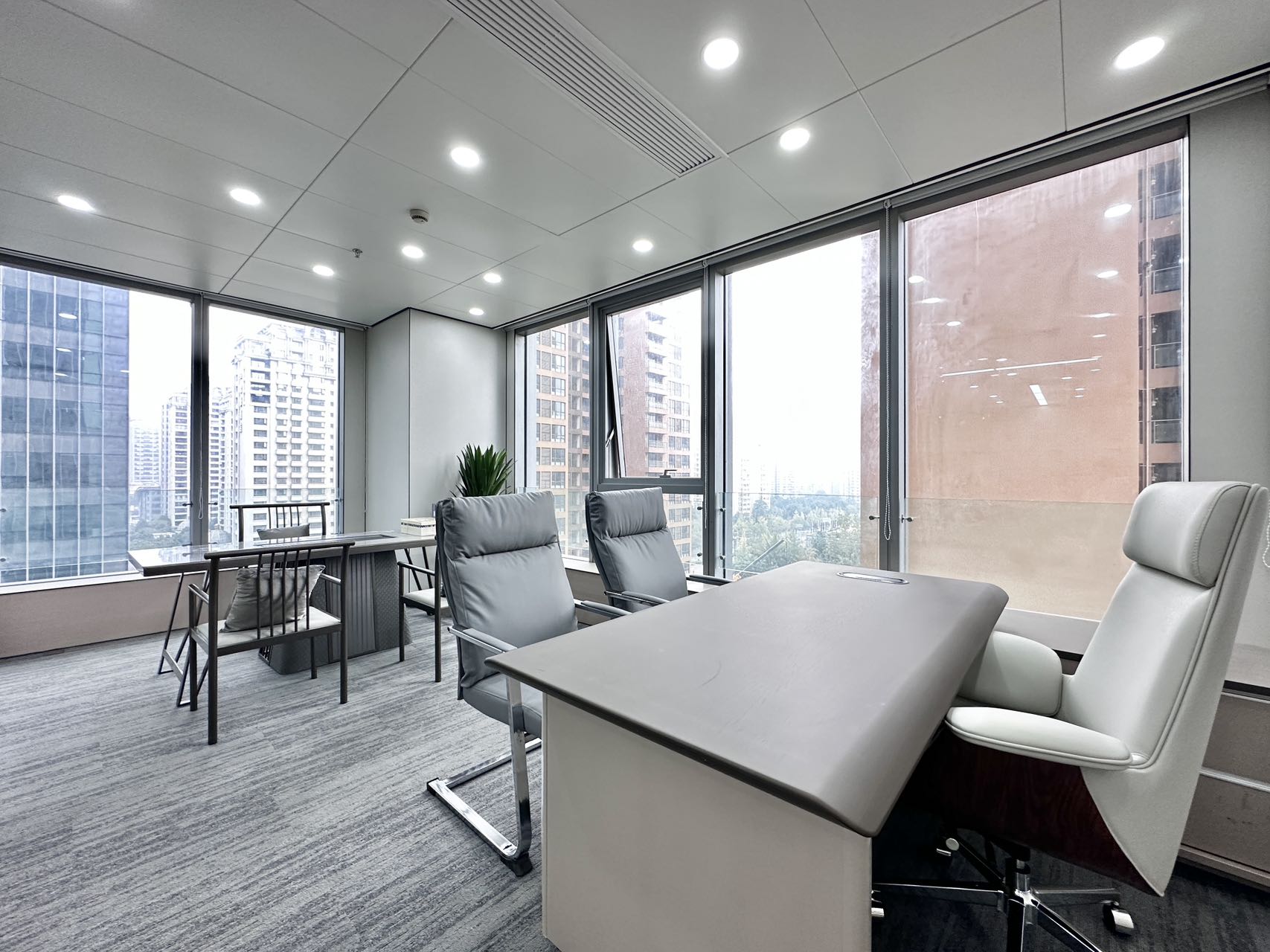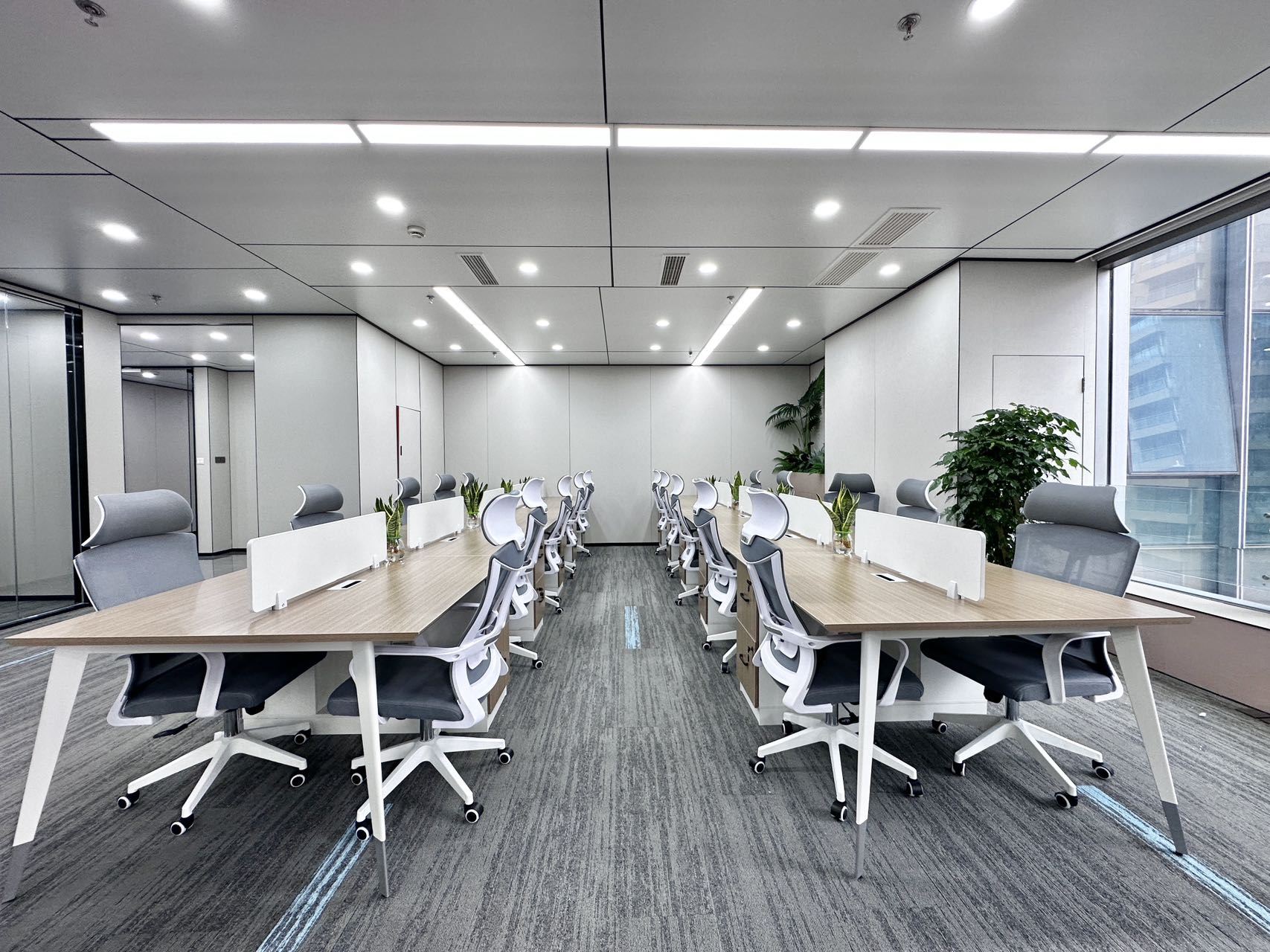 装修:格局:5隔间+40工位。精装修带家具